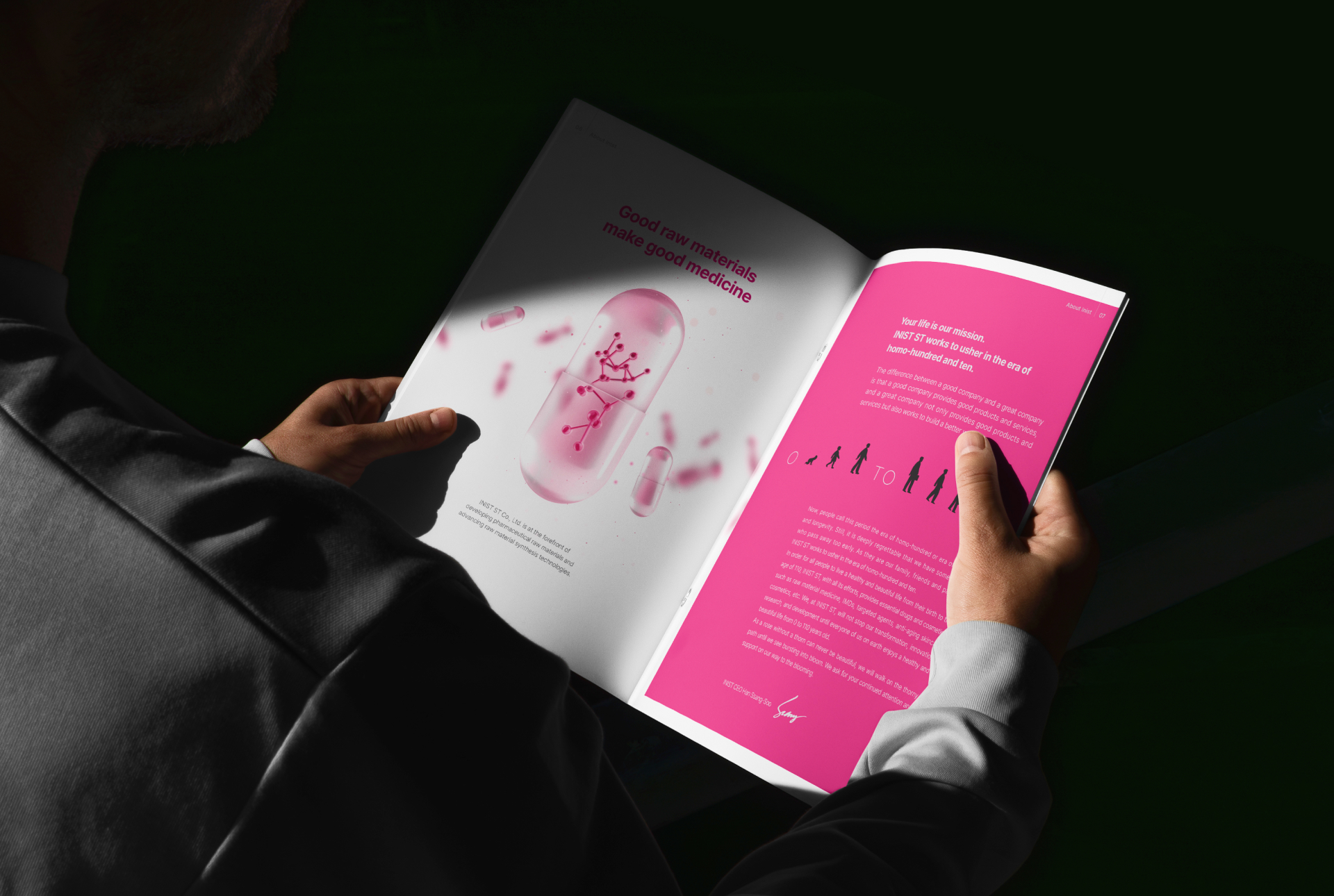이니스트 회사소개서는 바이오·헬스케어 기업의 기술력과 글로벌 비전을 효과적으로 전달하는 데 초점을 두고 디자인되었습니다. 전체 디자인은 블랙과 핑크 컬러를 중심으로 한 대비감 있는 비주얼을 통해 첨단 바이오 산업의 전문성과 브랜드 아이덴티티를 강조했습니다. 콘텐츠는 기업의 핵심 기술, 연구 역량, 글로벌 네트워크 등을 단계적으로 소개하는 구조로 구성했으며, 인포그래픽과 그래픽 요소를 활용해 복잡한 연구 및 사업 내용을 직관적으로 이해할 수 있도록 설계했습니다. 또한 여백과 이미지 중심의 레이아웃을 적용해 가독성을 높이고, 기업이 지향하는 혁신성과 미래지향적인 이미지를 시각적으로 표현했습니다.