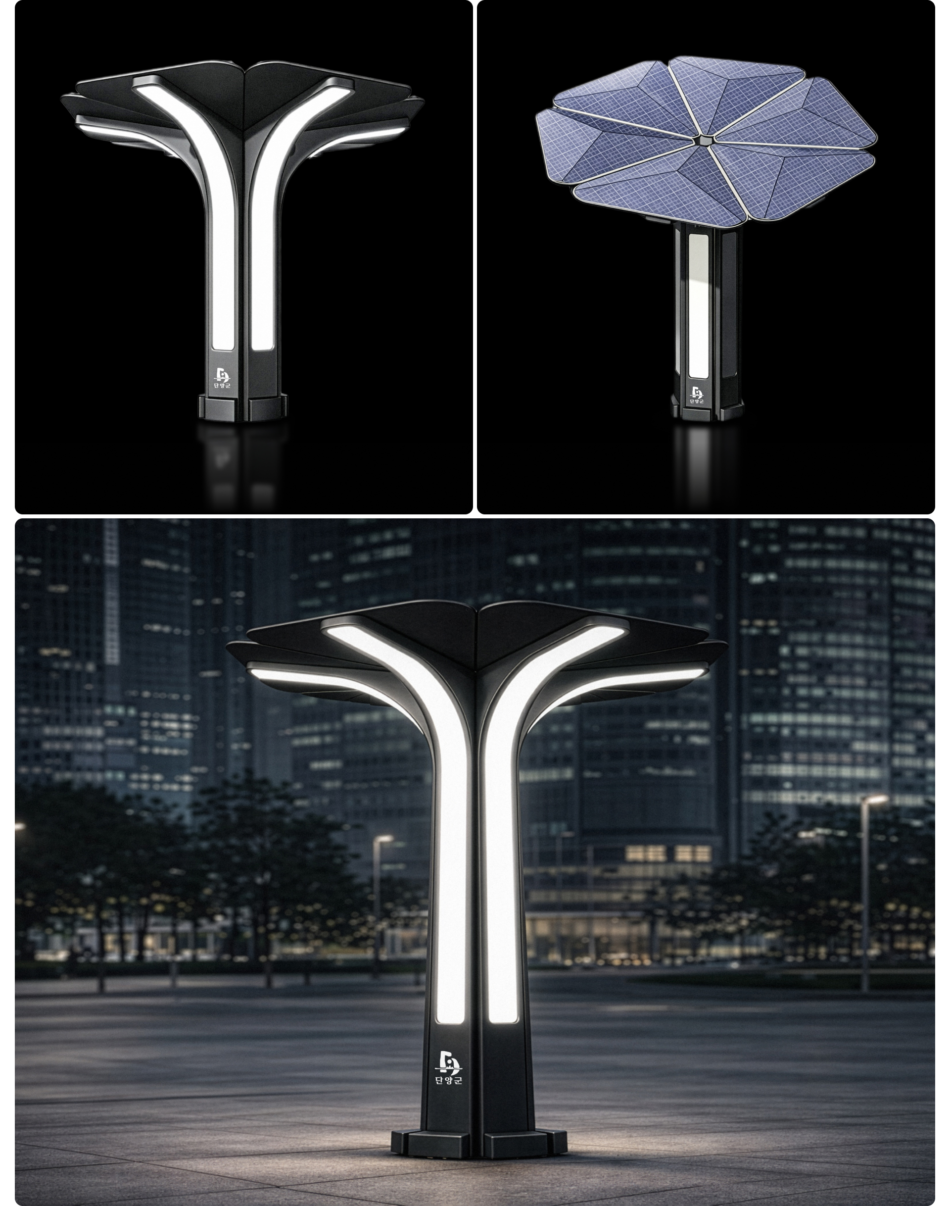이 가로등은 자연의 가지 형상을 모티브로 한 Y자 구조를 적용하여 도시 환경과 조화를 이루는 친환경 디자인입니다. 상단으로 갈수록 부드럽게 확장되는 실루엣은 빛의 확산 효율을 극대화하여 에너지 사용을 최소화하면서도 균일한 조도를 제공합니다. 슬림한 바디와 일체형 LED 라인 설계는 불필요한 장식을 배제해 소재 사용을 줄였으며, 유지관리 또한 용이하도록 설계하였습니다. 고효율 LED 광원을 적용해 전력 소비를 절감하고 탄소 배출 저감에 기여하는 지속가능한 조명 시스템입니다. 기능성과 상징성을 동시에 갖춘 디자인으로 미래 지향적 도시 경관을 제안합니다.
